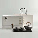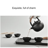 Set di tazze da tè teiera con manico ad anello in ceramica da viaggio portatile con vassoio da tè, with Tea Tray (Black), with Tea Tray (White)