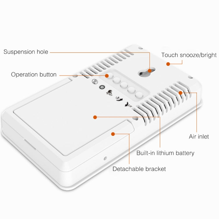4. Descrizione del funzionamento: esposizione di temperatura, esposizione di umidità, massima storica e registrare l'umidità temperatura minima entro 24 ore, funzione della sveglia, funzione di tempo, datario, pulsante in alto retroilluminazione